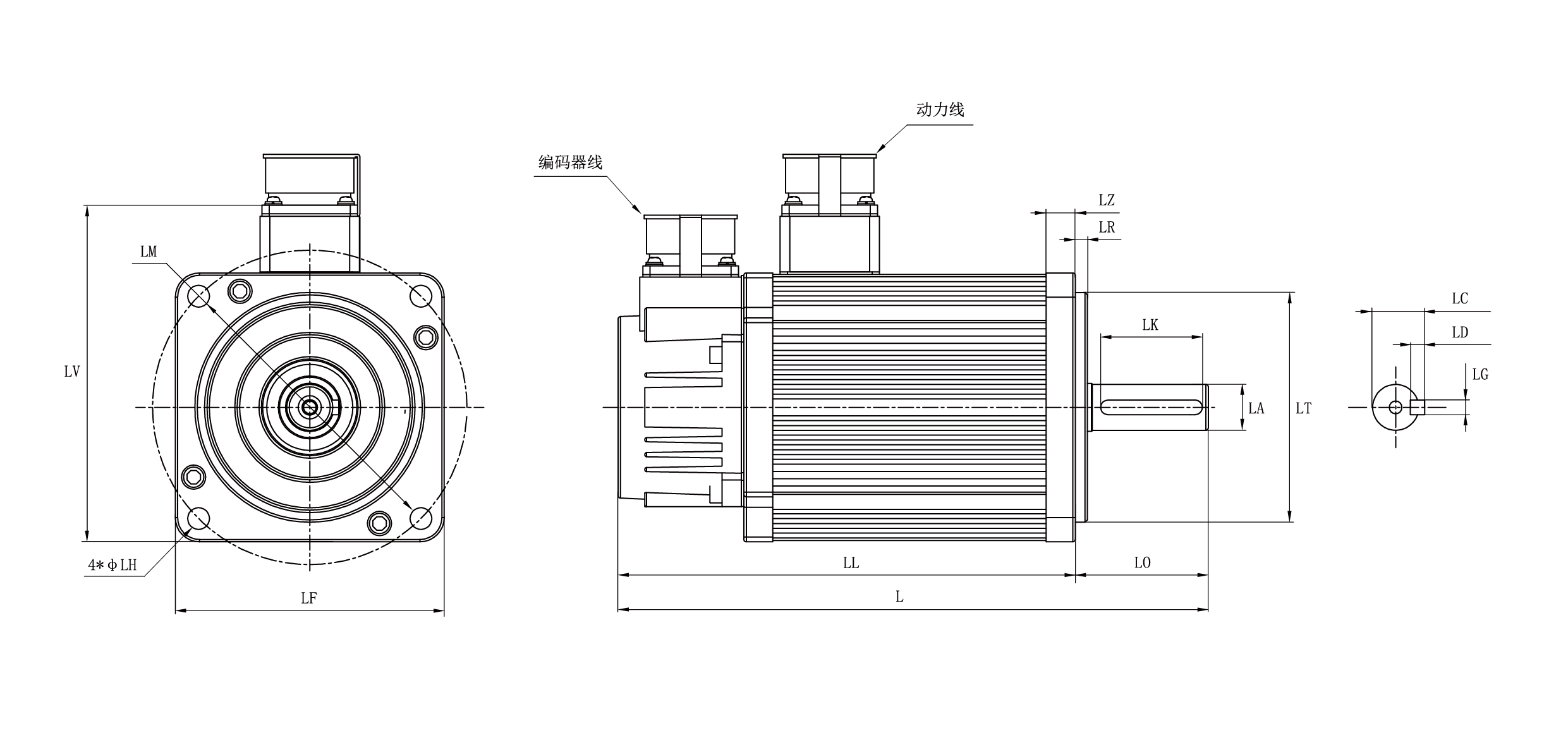 功率 電機(jī)型號(hào) LF L LL LO LZ LR LA LT LM LH LV LK LC LD LG 1200W HSM1-110M2230212D5 110 244 189 55 12 5 19 95 130 9 129.5 42 21.5 6 6 1500W HSM1-110M2230215D5 110 259 204 55 12 5 19 95 130 9 129.5 42 21.5 6 6