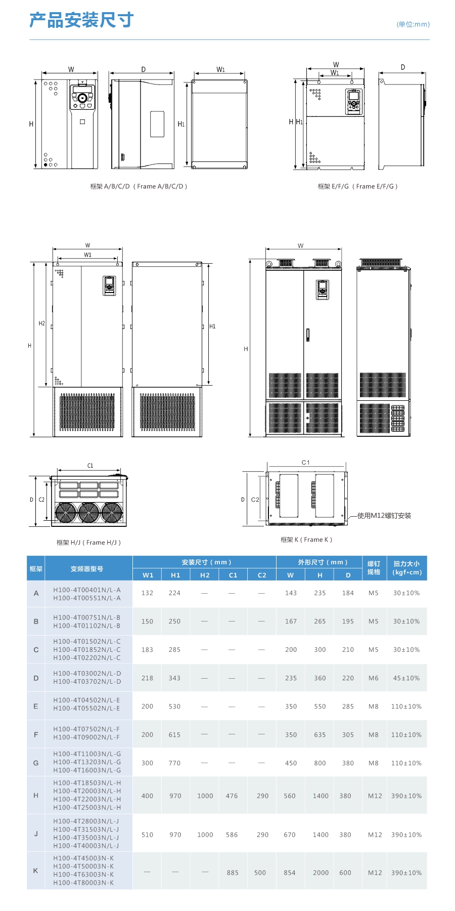 H100系列矢量型通用變頻器H100系列矢量型通用變頻器為我司自主開發(fā)的新一代通用系列產(chǎn)品,功率段涵蓋4.0kW - 800kW ,支持VF控制、開環(huán)矢量控制及閉環(huán)矢量控制,可廣泛的應(yīng)用于異步電機(jī)和永磁同步電機(jī)的調(diào)速控制。 產(chǎn)品開發(fā)始終堅(jiān)持以人為本,給客戶提供物超所值的產(chǎn)品,為客戶創(chuàng)造競(jìng)爭(zhēng)優(yōu)勢(shì)。 H100系列給客戶帶來無(wú)以倫比的人性化設(shè)計(jì)體驗(yàn),搭配新一代硅膠按鍵鍵盤,操作更舒適; 提供豐富的擴(kuò)展功能,可根據(jù)客戶不同需求選配相應(yīng)的功能擴(kuò)展卡; 真正意義的獨(dú)立風(fēng)道設(shè)計(jì)使整機(jī)可靠性更有保障。