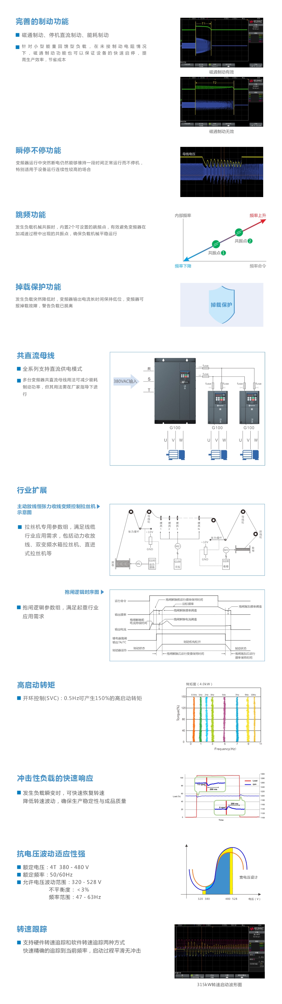 G100系列通用開環(huán)矢量變頻器G100系列通用開環(huán)矢量變頻器為華遠(yuǎn)電氣開發(fā)的新一代通用型產(chǎn)品,造型采用直線條黃金分割,外觀硬朗、科技感十足。全系列功率段涵蓋4kW -800kW ,支持VF控制、開環(huán)矢量控制,主要面向國內(nèi)市場的離心機(jī)、擠出機(jī)、工業(yè)洗衣機(jī)、拉絲機(jī)等設(shè)備的配套和紡織、注塑、化纖、水泥、陶瓷等生產(chǎn)線的改造需求,以及石化、煉油、熱電、供水、供熱等行業(yè)的風(fēng)機(jī)、泵類設(shè)備的大型項(xiàng)目需求。